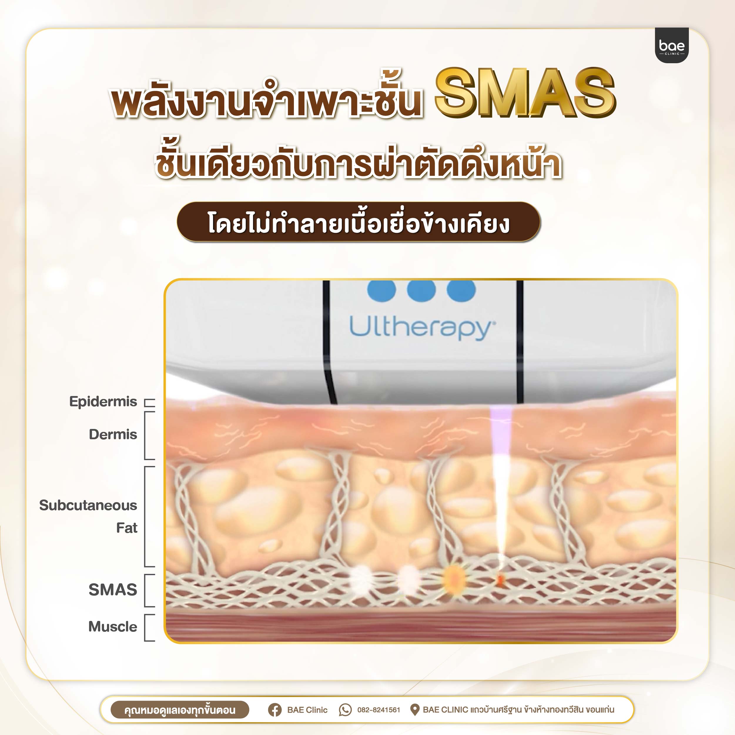 ชั้นเดียวการผ่าตัดดึงหน้า โดยไม่ทำลายเนื้อเยื่อข้างเคียง Ulthera เป็นเครื่องยกกระชับเดียวที่พลังงานลงลึกถึงชั้น SMAS โดยตรง พลังงานมีลักษณะเป็นจุดทรงกลมเล็ก ๆ เรียงกันเป็นแถว
